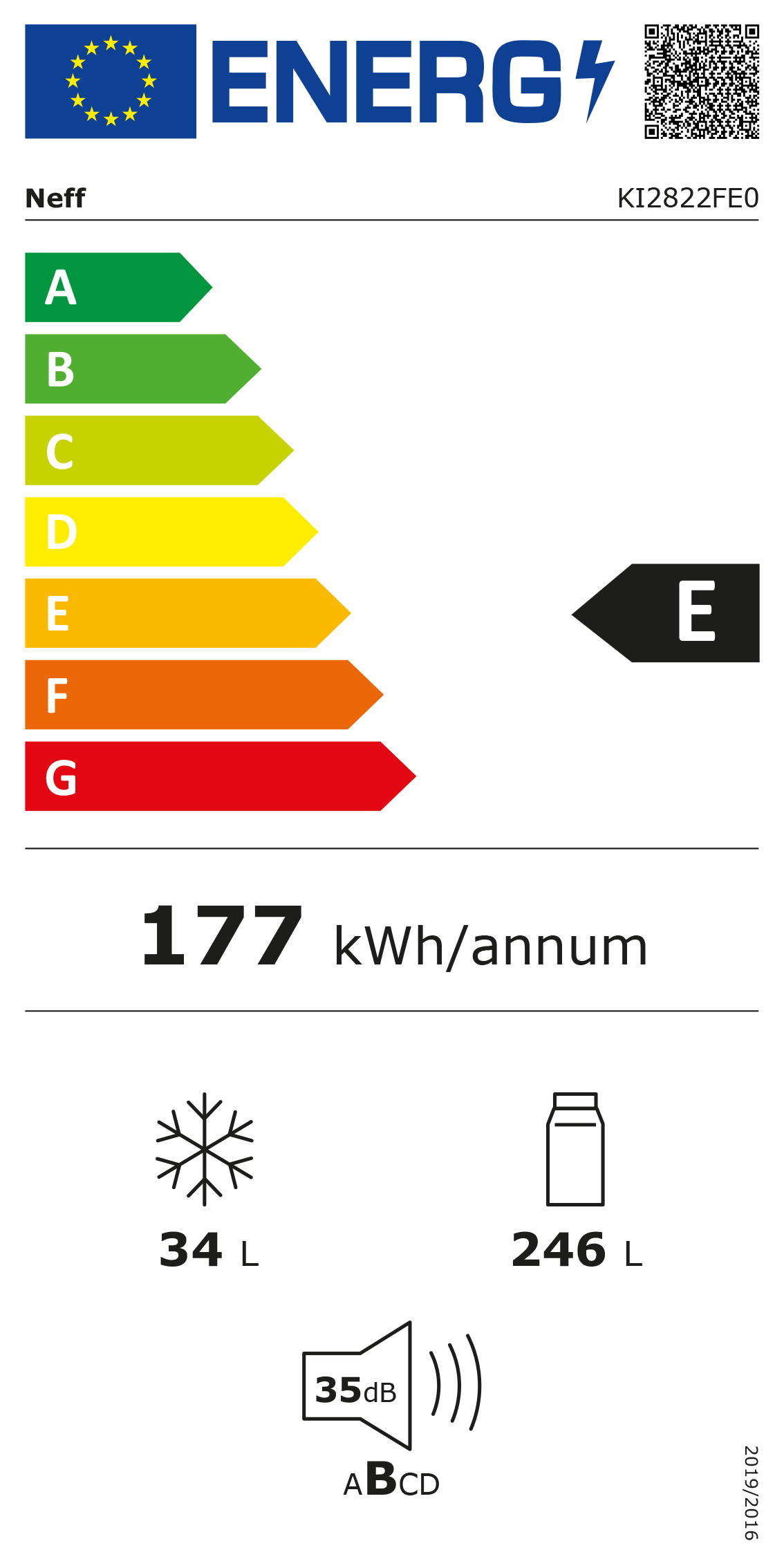 KI2822FE0 N 50, Einbau-Kühlschrank mit Gefrierfach, 177.5 x 56 cm, Flachscharnier