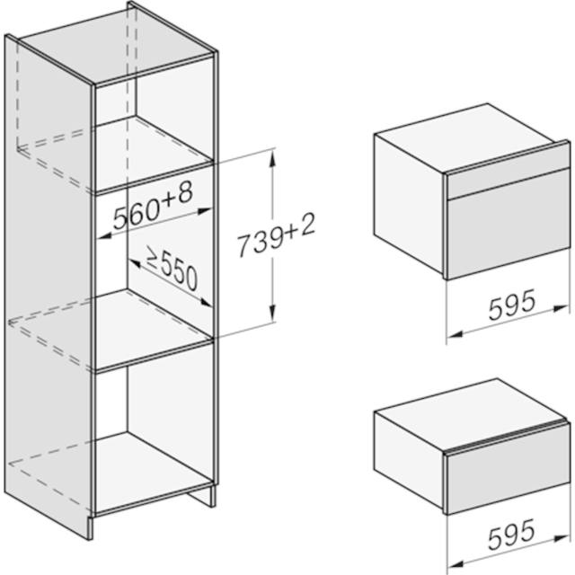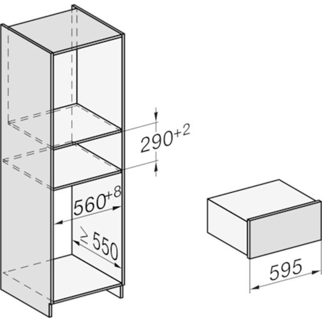 Grifflose Gourmet-Wärmeschublade in 29cm Höhe zum Vorwärmen von Geschirr, zum Speisen Warmhalten und Niedertemperaturgaren.