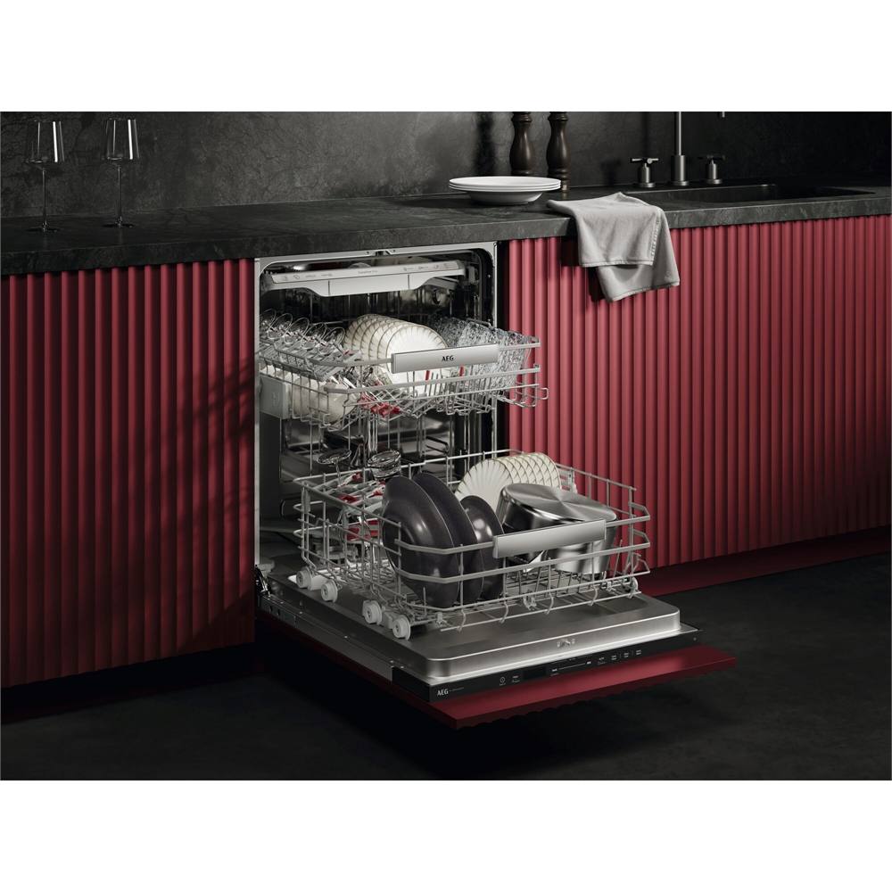 AEG Geschirrspüler der Serie 9000 sind mit multifunktionalen, leichtläufigen Körben und Besteckschubladen sowie speziellen Halterungen für Gläser und Backbleche ausgestattet. Das hocheffiziente Wassersystem entfernt hartnäckige Speiserückstände bei einem geringen Wasserverbrauch von nur 8.4 Litern.