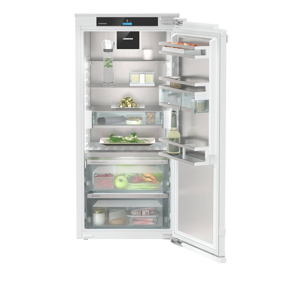 Produktbezeichnung: IRBAb 4170-22 Integrierbarer Kühlschrank mit BioFresh Professional und AutoDoorPDF: ProduktdatenblattPreis inkl. gesetzl. MwSt., ggf. zzgl. VersandkostenArtikel-Information:Hersteller: LIEBHERRArtikelnummer: 6780004016803113355Werksnummer: IRBAb417000122Typennummer: IRBAb4170-22EAN: 4016803113355Dieser Artikel ist im Geschäft bestellbar. Stellen Sie gerne hier Ihre Fragen zum Artikel oder rufen Sie uns an.Dieser Artikel ist im Geschäft bestellbar. Nutzen Sie unsere Produktanfrage für Fragen zum Artikel.MerkenVergleichenProduktanfrageHaben Sie Fragen zu diesem Produkt?Frage stellenSie haben noch Fragen oder wünschen eine persönliche Beratung vor Ort?Wir von Neuhoff helfen Ihnen gerne weiter!Jetzt kontakt aufnehmenHighlightsDetaillierte ProduktmerkmaleProduktsteckbriefTechn. DatenServiceleistungHighlightsLightTowerFreuen Sie sich über einen optimal ausgeleuchteten Innenraum: Die LightTower rücken Lebensmittel ins beste Licht und sie sind so positioniert, dass Ihr befüllter Kühlschrank stets großflächig ausgeleuchtet wird. Da die LightTower flächenbündig in die Seitenwände integriert sind, bleibt zudem mehr Platz für Ihre Lebensmittel. SuperCoolIhr Kühlschrank soll die optimale Temperatur halten, auch wenn Sie gerade sonnenwarme Markteinkäufe hineingelegt haben? Das ist ein Fall für SuperCool: Einmal aktiviert, verstärkt Ihr Liebherr seine Leistung, bis die frischen Lebensmittel so kühl sind wie der übrige Inhalt. Danach schaltet sich SuperCool automatisch ab. UltraSilentVon diesem Liebherr haben Sie sicher noch nie gehört – einfach, weil er so leise ist wie kaum ein anderer Kühlschrank: Dank seiner extra geräuschreduzierten Bauweise ist er fast „unerhört“ still. Durch sein Höchstmaß an Geräuschlosigkeit setzt er selbst im Vergleich zu den leisesten Kühlgeräten neue Maßstäbe. Teilbare GlasplatteWenn Sie eine Karaffe oder hohe Behältnisse im Kühlschrank lagern, möchten Sie dafür nicht gleich eine ganze Glasplatte entfernen müssen. Warum auch? Es gibt ja die teilbare Glasplatte: Schieben Sie einfach die vordere Hälfte der Glasplatte unter die hintere Hälfte. So können Sie vorne höhere Behälter einstellen und haben dennoch genug Platz für andere Lebensmittel. Türalarm Der Türalarm Ihres Liebherrs passt auf, dass Sie nicht unnötig Energie verbrauchen und Lebensmittel nicht verderben: Sobald die Gerätetür zu lange offen steht, alarmiert er Sie – durch pulsierendes Licht und per Warnton. Was "zu lange" ist, entscheiden aber Sie: Je nach Einstellung löst der Türalarm nach 1, 2 oder 3 Minuten aus. Fruit & Vegetable-SafeKnackiger Salat oder Erdbeeren: Die empfindlichsten Lebensmittel verdienen einen besonderen Platz, um länger frisch zu bleiben: BioFresh-Safes. Im „Fruit & Vegetable-Safe“ ist die Temperatur nahe 0 °C. In Verbindung mit der dort dauerhaft herrschenden Luftfeuchtigkeit, dank dichtem Verschluss, fühlen sich unverpacktes Obst und Gemüse besonders wohl. Sie müssen nichts einstellen. BioFresh ProfessionalDer BioFresh Professional-Safe verleiht Lebensmitteln einen zusätzlichen Frische-Kick für maximale Haltbarkeit – Wow-Effekt inklusive: Dank HydroBreeze breitet sich ein kühler Nebel wie Balsam über das frische Obst und Gemüse aus. In Kombination mit einer Temperatur knapp über 0 °C und hoher Luftfeuchtigkeit fühlen sich unverpackte Obst- und Gemüsesorten besonders wohl. Wechselbare Türdichtung Sie finden, die Türdichtung Ihres Liebherr sollte nach einigen Jahren mal erneuert werden? Das können Sie ganz einfach selbst erledigen: Die wechselbare Türdichtung lässt sich mit wenigen Handgriffen entfernen – und die neue Dichtung setzen Sie ebenso leicht wieder ein. So ist auch dieser Teil des Kühlschranks immer makellos und hygienisch sauber. HolidayModeSie verreisen? Dann schicken Sie doch auch Ihren Liebherr in die Ferien: Im HolidayMode sind Ventilator und SuperCool abgeschaltet und Ihr Kühlschrank regelt seine Temperatur auf +15 °C. Das spart Strom und verhindert dennoch unangenehme Gerüche. Das Gefrierteil bleibt natürlich eingeschaltet. PartyModeJetzt können die Gäste kommen – denn auch Ihr Liebherr ist in Partystimmung. Im PartyMode sind Funktionen wie SuperCool und/oder SuperFrost aktiviert. Nach 24 Stunden kehrt Ihr Liebherr automatisch wieder in seinen normalen Modus zurück.LED-BioFresh-BeleuchtungErleben Sie die helle Freude an Ihrem frischen Obst und Gemüse: Die LED-BioFresh-Beleuchtung rückt den Inhalt Ihres BioFresh-Safes ins beste Licht. Die Beleuchtung ist mittig über den BioFresh-Safes platziert und wird ergänzt durch beidseitige LED-Lichtsäulen. Sie ragen in den obersten BioFresh-Safe hinein und beleuchten ihn besonders hell. Platz für Backblech Möchten Sie selbstgebackenen Obstkuchen frisch halten? Oder vorbereitete Pizza, die erst später in den Backofen soll? Schieben Sie Ihr Backblech doch einfach in Ihren Liebherr ¬– er bietet Ihnen reichlich Platz, um ein Backblech zu lagern. Besonders praktisch: Sie können das Backblech bei 90°-Türöffnung ein- und ausschieben. SoftTelescopicFreuen Sie sich darauf, Ihre BioFresh-Safes zu öffnen: Nicht nur wegen der frischen Lebensmittel – sondern auch, weil das Öffnen so leicht und das Schließen selbstständig und gedämpft von statten geht. Dafür sorgen die Teleskopschienen, auf denen die Safes sanft entgegenkommen. Und weil diese voll ausfahren, haben Sie besten Überblick über den Inhalt. TürabstellerSie wünschen sich eine sichere Lagerfläche für Ihre Getränke oder Lebensmittel? Und wollen sie dennoch leicht erreichen? Unsere Türabsteller bieten Ihnen beides. Sie sind höhenverstellbar und passen sich somit an Ihre Bedürfnisse an. Praktisch ist auch die verschiebbare und herausnehmbare Flaschenhalterung: So stehen Ihre Flaschen immer sicher. SmartSteel im InnenraumSmartSteel bei der Innentür und der Rückwand verleihen Ihrem Liebherr eine edle Anmutung. Auch Ihre Lebensmittel werden SmartStee