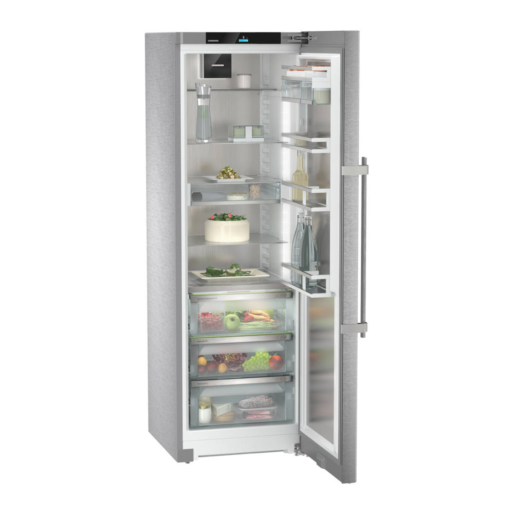 Produktbezeichnung: SRBstc 529i-22 Standkühlschrank mit BioFresh ProfessionalPDF: ProduktdatenblattPreis inkl. gesetzl. MwSt., ggf. zzgl. VersandkostenArtikel-Information:Hersteller: LIEBHERRArtikelnummer: 6780004016803129837Werksnummer: SRBstc529i00122Typennummer: SRBstc529i-22EAN: 4016803129837Dieser Artikel ist im Geschäft bestellbar. Stellen Sie gerne hier Ihre Fragen zum Artikel oder rufen Sie uns an.Dieser Artikel ist im Geschäft bestellbar. Nutzen Sie unsere Produktanfrage für Fragen zum Artikel.MerkenVergleichenProduktanfrageHaben Sie Fragen zu diesem Produkt?Frage stellenSie haben noch Fragen oder wünschen eine persönliche Beratung vor Ort?Wir von Neuhoff helfen Ihnen gerne weiter!Jetzt kontakt aufnehmenHighlightsDetaillierte ProduktmerkmaleTechn. DatenServiceleistungHighlightsSuperCoolIhr Kühlschrank soll die optimale Temperatur halten, auch wenn Sie gerade sonnenwarme Markteinkäufe hineingelegt haben? Das ist ein Fall für SuperCool: Einmal aktiviert, verstärkt Ihr Liebherr seine Leistung, bis die frischen Lebensmittel so kühl sind wie der übrige Inhalt. Danach schaltet sich SuperCool automatisch ab. LightTowerFreuen Sie sich über einen optimal ausgeleuchteten Innenraum: Die LightTower rücken Lebensmittel ins beste Licht und sie sind so positioniert, dass Ihr befüllter Kühlschrank stets großflächig ausgeleuchtet wird. Da die LightTower flächenbündig in die Seitenwände integriert sind, bleibt zudem mehr Platz für Ihre Lebensmittel. EnergySaverMöchten Sie gleichzeitig Energie und Geld sparen? Ihr Liebherr unterstützt Sie dabei – mit dem Energiesparmodus. Wenn Sie den EnergySaver aktivieren, erhöht sich die Standard-Temperatur um zwei Grad. So braucht Ihr Liebherr noch weniger Strom – und Ihre Lebensmittel bleiben optimal frisch. Fruit & Vegetable-SafeKnackiger Salat oder Erdbeeren: Die empfindlichsten Lebensmittel verdienen einen besonderen Platz, um länger frisch zu bleiben: BioFresh-Safes. Im „Fruit & Vegetable-Safe“ ist die Temperatur nahe 0 °C. In Verbindung mit der dort dauerhaft herrschenden Luftfeuchtigkeit, dank dichtem Verschluss, fühlen sich unverpacktes Obst und Gemüse besonders wohl. Sie müssen nichts einstellen. Ambiente-BeleuchtungLicht setzt besondere Design-Akzente – auch in Ihrem Kühlschrank: mit unserer Ambiente-Beleuchtung. Die umlaufende Beleuchtung setzt einzigartige Akzente im Innenraum. Und zusammen mit der Rückwand im SmartSteel-Design sowie dem schwarz hochglänzenden Ventilator entsteht so ein stimmungsvolles Ambiente. Meat & Dairy-SafeSie möchten, dass das zarte Kalbsfilet oder die Frischmilch möglichst lange frisch bleiben? Dafür sorgen die BioFresh-Safes: Im „Meat & Dairy-Safe“ herrscht eine Temperatur nahe 0 °C – ideale Lagerbedingungen auch für empfindlichste Lebensmittel. Und das Beste: Alles ist ab Werk perfekt eingestellt zum sofortigen Gebrauch - für längere Frische. NightModeIhr Liebherr wünscht Ihnen eine gute Nacht – und sorgt für ungestörte Ruhe: Denn im NightMode schaltet er alle Töne und Geräusche ab. Und auch der IceMaker bleibt mucksmäuschenstill. Außerdem dimmt er die Innenbeleuchtung, sodass Sie von sanftem Licht empfangen werden, wenn Sie nachts den Kühlschrank öffnen. Stangengriff (mit integrierter Öffnungsmechanik)Öffnen leicht gemacht: Der praktische und elegante Stangengriff mit integrierter Öffnungsmechanik ermöglicht es Ihnen, die Gerätetür mit geringem Kraftaufwand zu öffnen - selbst bei mehrmaligem Öffnen kurz hintereinander. Die edlen Griffe im minimalistischen Design sind ein zusätzlicher Hingucker an Ihrem Kühlgerät. SmartSteelDie puristische Formensprache des Geräts wird dank SmartSteel-Oberfläche exklusiv in Szene gesetzt. Der horizontale Schliff bringt den Edelstahl markant zur Geltung und verleiht ihm seidigen Glanz und eine angenehme Haptik. Darüber hinaus minimiert die verarbeitete Antifingerprint-Beschichtung Fingerabdrücke und macht die Oberfläche unempfindlich gegen Kratzer. So stört nichts das wertige Äußere.TürabstellerSie wünschen sich eine sichere Lagerfläche für Ihre Getränke oder Lebensmittel? Und wollen sie dennoch leicht erreichen? Unsere höhenverstellbaren Türabsteller bieten Ihnen beides – dank der Böden aus Sicherheitsglas und Edelstahlrelings. Und die verschiebbare und herausnehmbare Flaschenhalterung sorgt für den sicheren Stand Ihrer Flaschen. BioFresh ProfessionalDer BioFresh Professional-Safe verleiht Lebensmitteln einen zusätzlichen Frische-Kick für maximale Haltbarkeit – Wow-Effekt inklusive: Dank HydroBreeze breitet sich ein kühler Nebel wie Balsam über das frische Obst und Gemüse aus. In Kombination mit einer Temperatur knapp über 0 °C und hoher Luftfeuchtigkeit fühlen sich unverpackte Obst- und Gemüsesorten besonders wohl. SmartSteel im InnenraumSmartSteel bei der Innentür und der Rückwand verleihen Ihrem Liebherr eine edle Anmutung. Auch Ihre Lebensmittel werden SmartSteel lieben: Denn Edelstahl ist lebensmittelecht und hygienisch. Zudem reduziert SmartSteel die Sichtbarkeit von Fingerabdrücken – das macht den Anblick noch schöner. SoftTelescopicFreuen Sie sich darauf, Ihre BioFresh-Safes zu öffnen: Nicht nur wegen der frischen Lebensmittel – sondern auch, weil das Öffnen so leicht und das Schließen selbstständig und gedämpft von statten geht. Dafür sorgen die Teleskopschienen, auf denen die Safes sanft entgegenkommen. Und weil diese voll ausfahren, haben Sie besten Überblick über den Inhalt. VarioSafeOb Joghurtbecher, Marmeladengläser oder Tuben – wünschen Sie sich einen übersichtlichen Platz für solche kleinteiligen Lebensmittel? In Ihrem Liebherr gibt es ihn: den VarioSafe. Er schafft nicht nur Ordnung, sondern ist auch sehr variabel. Platzieren Sie den zweistufig höhenverstellbaren VarioSafe im Kühlschrank einfach da, wo es für Sie am besten passt. Sockelkonzept Ihr Kühlgerät soll leistungsstark und komfortabel sein – zugleich aber auch nachhaltig? Dann is