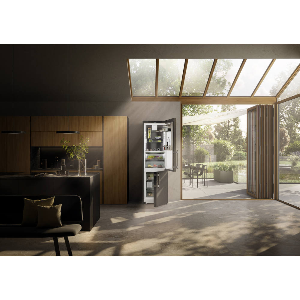 Produktbezeichnung: CBNbsa 575i-22 Kühl-Gefrierkombination mit BioFresh und NoFrostPDF: ProduktdatenblattPreis inkl. gesetzl. MwSt., ggf. zzgl. VersandkostenArtikel-Information:Hersteller: LIEBHERRArtikelnummer: 6780004016803141112Werksnummer: CBNbsa10575iTypennummer: CBNbsa10575iEAN: 4016803141112Dieser Artikel ist im Geschäft bestellbar. Stellen Sie gerne hier Ihre Fragen zum Artikel oder rufen Sie uns an.Dieser Artikel ist im Geschäft bestellbar. Nutzen Sie unsere Produktanfrage für Fragen zum Artikel.MerkenVergleichenProduktanfrageHaben Sie Fragen zu diesem Produkt?Frage stellenSie haben noch Fragen oder wünschen eine persönliche Beratung vor Ort?Wir von Neuhoff helfen Ihnen gerne weiter!Jetzt kontakt aufnehmenHighlightsDetaillierte ProduktmerkmaleTechn. DatenServiceleistungHighlightsSuperCoolIhr Kühlschrank soll die optimale Temperatur halten, auch wenn Sie gerade sonnenwarme Markteinkäufe hineingelegt haben? Das ist ein Fall für SuperCool: Einmal aktiviert, verstärkt Ihr Liebherr seine Leistung, bis die frischen Lebensmittel so kühl sind wie der übrige Inhalt. Danach schaltet sich SuperCool automatisch ab. LightTowerFreuen Sie sich über einen optimal ausgeleuchteten Innenraum: Die LightTower rücken Lebensmittel ins beste Licht und sie sind so positioniert, dass Ihr befüllter Kühlschrank stets großflächig ausgeleuchtet wird. Da die LightTower flächenbündig in die Seitenwände integriert sind, bleibt zudem mehr Platz für Ihre Lebensmittel. LED-GefrierteilbeleuchtungDie LED-Gefrierteilbeleuchtung sorgt in Ihren Gefrierschubladen für ein angenehmes Licht. So finden Sie Ihre gewünschten Lebensmittel noch einfacher. Die energieeffiziente LED-Einheit ist elegant und platzsparend über den Schubladen positioniert. EnergySaverMöchten Sie gleichzeitig Energie und Geld sparen? Ihr Liebherr unterstützt Sie dabei – mit dem Energiesparmodus. Wenn Sie den EnergySaver aktivieren, erhöht sich die Standard-Temperatur um zwei Grad. So braucht Ihr Liebherr noch weniger Strom – und Ihre Lebensmittel bleiben optimal frisch. BottleTimerKennen Sie das? Sie legen eine Flasche Wein ins Eisfach, damit sie schnell kalt wird – und vergessen Sie dort. Mit dem BottleTimer passiert das nie wieder: Er sorgt durch die Aktivierung von SuperFrost für eine extra schnelle Kühlung. Und sobald die Flasche die optimale Temperatur hat, erinnert Ihr Lieberr Sie via App daran, sie aus dem Eisfach zu nehmen. SuperFrostSie möchten Ihre frischen Lebensmittel vitaminschonend einfrieren? Aktivieren Sie einfach SuperFrost – schon erhöht das Gefrierteil seine Kälteleistung. So bleibt die Temperatur konstant, wenn Sie ungefrorene Lebensmittel hineinlegen. SuperFrost ist zugleich energiesparend: Falls Sie die Funktion nicht manuell abschalten, deaktiviert sie sich automatisch nach 65 Stunden. Fruit & Vegetable-SafeKnackiger Salat oder Erdbeeren: Die empfindlichsten Lebensmittel verdienen einen besonderen Platz, um länger frisch zu bleiben: BioFresh-Safes. Im „Fruit & Vegetable-Safe“ ist die Temperatur nahe 0 °C. In Verbindung mit der dort dauerhaft herrschenden Luftfeuchtigkeit, dank dichtem Verschluss, fühlen sich unverpacktes Obst und Gemüse besonders wohl. Sie müssen nichts einstellen. Meat & Dairy-SafeSie möchten, dass das zarte Kalbsfilet oder die Frischmilch möglichst lange frisch bleiben? Dafür sorgen die BioFresh-Safes: Im „Meat & Dairy-Safe“ herrscht eine Temperatur nahe 0 °C – ideale Lagerbedingungen auch für empfindlichste Lebensmittel. Und das Beste: Alles ist ab Werk perfekt eingestellt zum sofortigen Gebrauch - für längere Frische. NightModeIhr Liebherr wünscht Ihnen eine gute Nacht – und sorgt für ungestörte Ruhe: Denn im NightMode schaltet er alle Töne und Geräusche ab. Und auch der IceMaker bleibt mucksmäuschenstill. Außerdem dimmt er die Innenbeleuchtung, sodass Sie von sanftem Licht empfangen werden, wenn Sie nachts den Kühlschrank öffnen. Stangengriff (mit integrierter Öffnungsmechanik)Öffnen leicht gemacht: Der praktische und elegante Stangengriff mit integrierter Öffnungsmechanik ermöglicht es Ihnen, die Gerätetür mit geringem Kraftaufwand zu öffnen - selbst bei mehrmaligem Öffnen kurz hintereinander. Die edlen Griffe im minimalistischen Design sind ein zusätzlicher Hingucker an Ihrem Kühlgerät. EasyTwist-IceOb am Sommertag oder zur Party: Dank EasyTwist-Ice bereiten Sie einfach und schnell einen Vorrat an Eiswürfeln – ganz ohne Festwasseranschluss. Einfach Wasser in den Tank füllen, gefrieren lassen und mit einer einfachen Drehung die fertigen Eiswürfel lösen - schon servieren Sie kühle Drinks. Der EasyTwist-Ice ist einfach zu reinigen und sorgt für eine stets hygienische Eiswürfelproduktion.TürabstellerSie wünschen sich eine sichere Lagerfläche für Ihre Getränke oder Lebensmittel? Und wollen sie dennoch leicht erreichen? Unsere höhenverstellbaren Türabsteller bieten Ihnen beides – dank der Böden aus Sicherheitsglas und Edelstahlrelings. Und die verschiebbare und herausnehmbare Flaschenhalterung sorgt für den sicheren Stand Ihrer Flaschen. PartyModeJetzt können die Gäste kommen – denn auch Ihr Liebherr ist in Partystimmung. Im PartyMode sind Funktionen wie SuperCool und/oder SuperFrost aktiviert. Nach 24 Stunden kehrt Ihr Liebherr automatisch wieder in seinen normalen Modus zurück.VarioTempErleben Sie die große Freiheit beim Lagern von Lebensmitteln: Dank VarioTemp können Sie den Gefrierteil Ihrer Kühl-Gefrierkombination gradgenau von -2 °C bis +14 °C einstellen. So können Sie ihn z. B. bei Partys als Extra-Kühlzone nutzen – oder als „Kellerfach“. Und wenn Sie den Gefrierteil mal nicht brauchen? Dann schalten Sie ihn unabhängig vom Kühlteil ab und sparen Energie und Geld.BlackSteel RückwandVerleihen Sie Ihrem modernen, dunklen Küchendesign den wesentlichen Akzent: Einen Liebherr mit stilvollem BlackSteel-Interieur: Die Geräterückwand besticht durch eine Oberfläche aus schwarzem Edelsta