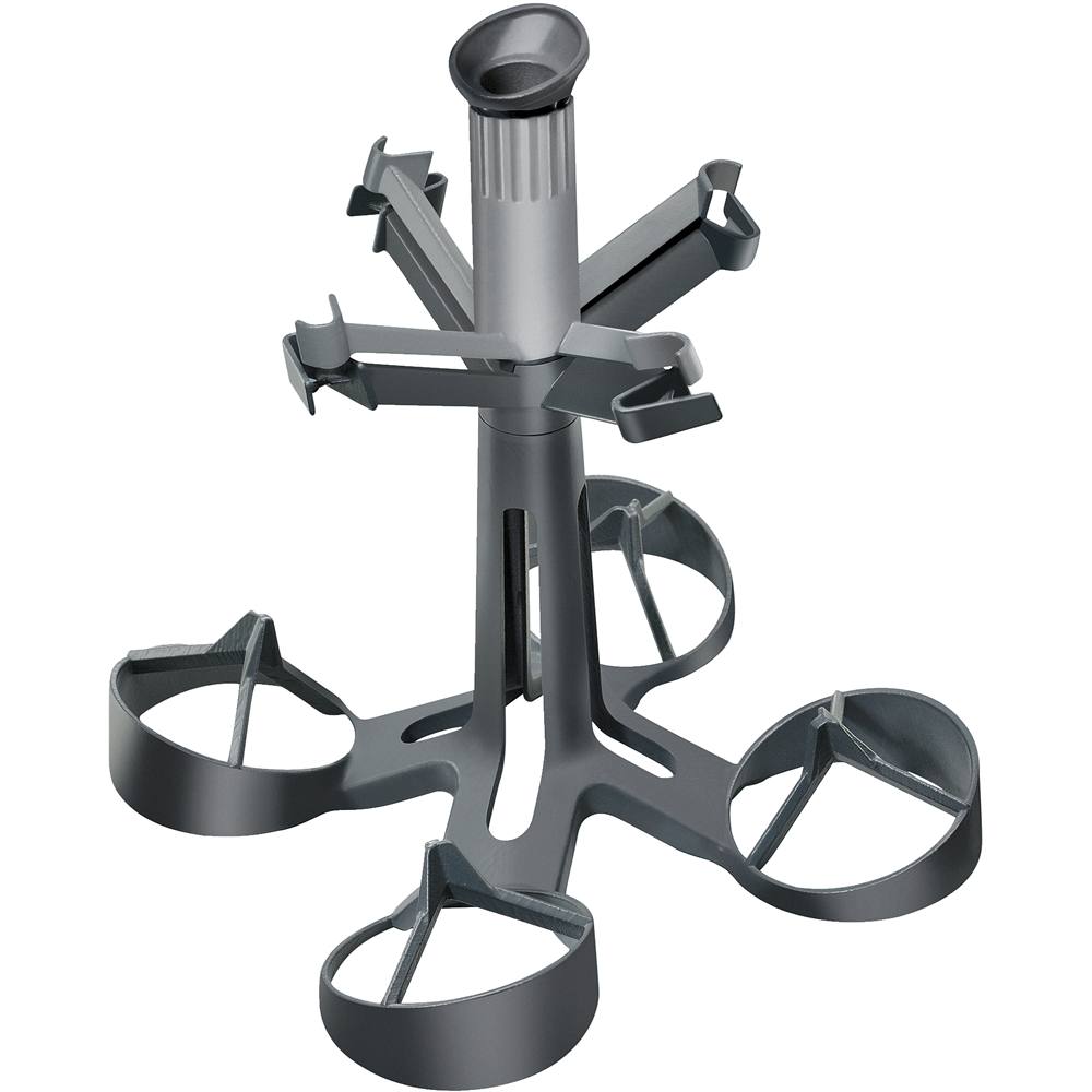 Schwarzer Getränkehalter mit sechs Armenden, die Gläser aufnehmen können. Zentraler, zylindrischer Sockel.