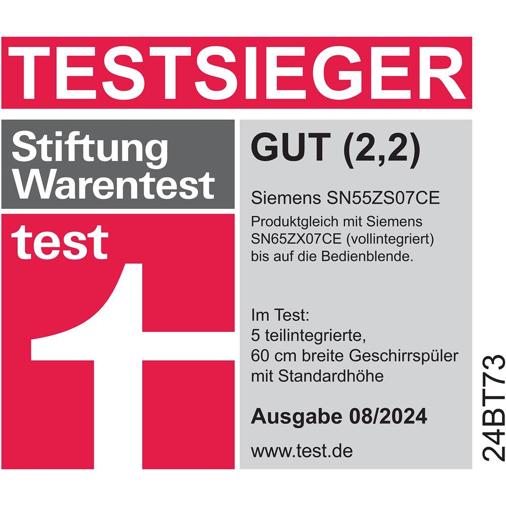 Produktbezeichnung: SN55ZS07CE iQ500, Teilintegrierter Geschirrspüler, 60 cm, Gebürsteter Stahl
