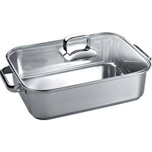 Inhalt: 6,5 l Außenmaß: 41,5 x 24 cm Bodenmaß: 31 x 22 cm Induktionsgeeignet Gewicht: 2,3 kg (mit Deckel: 3,3 kg) Material: Hochwertiger Edelstahl, rostfrei mit Glas deckel Spülmaschinengeignet Backofenfest (mit Glasdeckel bis 180° C, ohne Glasdeckel bis 220° C)